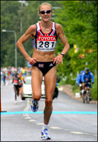 Radcliffe was now in wholly familiar territory and, as the sun broke out for the first time in the day, drying the Helsinki cobbles, she slowly extended her lead. She was 28 seconds ahead of Ndereba at 35km and 45 ahead of Tomescu.