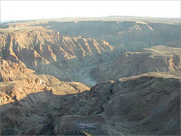 The Fish River CanyonThe Canyon is stark, rugged, magnificently desolate and harshly unforgiving. Added to this is the lack of water currently in the canyon. This has meant that all hiking activities have been suspended and special permission was required to allow this attempt to take place. The lack of water meant that each athlete had to carry a backpack with approximately 5 litres of water. This together with the energy supplements and emergency gear meant that each athlete had to carry an additional 7kg in weight.