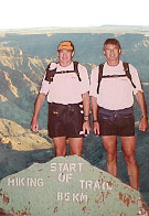 On the 16 August 2003, four Namibians, Russell Paschke, Charlie du Toit, Coenraad Pool and Tommy van Wyk set out in an attempt to break the record for completing the above 84km trail. The existing record was 11hrs 42min and was set up on 13 July 1990 by two South Africans, Bruce Matthews and Ronnie Muhl. Bruce had at that stage completed 16 Comrades Marathons finishing in the top 20 positions 6 times. He had also finished the London to Brighton Marathon in 7th place in 1989 and received a gold medal in the Two Oceans Marathon in 1984. Ronnie was a veteran of 7 Comrades Marathons and 9 Two Oceans Marathons.