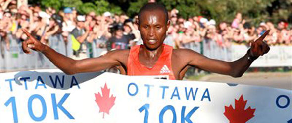 May 26, 2012 – OTTAWA – With a time of 27:41, 30-year-old Kenyan Geoffrey Mutai led a talented field of elite racers across the finish line of the 10K distance in this evening’s Tamarack Homes Ottawa Race Weekend. Mutai did not break the 27:24 course...