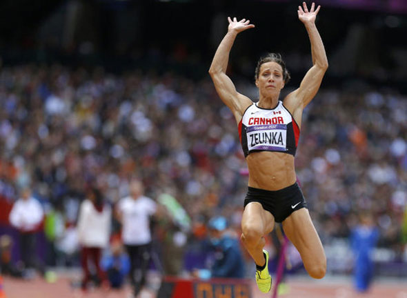 London, UK – Dylan Armstrong of Kamloops, B.C., placed fifth in the men’s shot put while Jessica Zelinka of London, Ont., sits in third place in the heptathlon after day one of athletics (track and field) at the 2012 Olympic Games. Armstrong who trains...