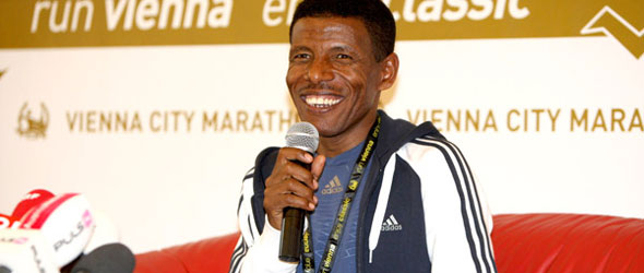 On Monday, a day after the Vienna City Marathon where he will compete in a unique half marathon, Haile Gebrselassie will turn 38. The race was created especially for Haile and has the motto: ,Catch me, if you can’. While Gebrselassie will run the half marathon, which is staged parallel to the marathon in Vienna, he will at the same time chase the elite marathon runners, who will get a head start of two minutes. When the marathon world record holder was told about the idea in autumn 2010 he instantly liked the unusual format. “It is a very good idea and something different,” said Haile Gebrselassie after his arrival in Vienna on Friday morning.