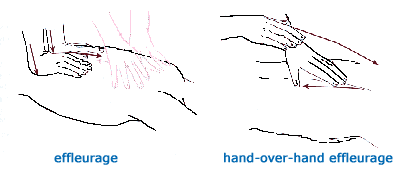 Light stroking, induces relaxation or is used on areas sensitive to touch; however deep massage is used to achieve a definite physiological response.Light and deep effleurage can be used alternately when both features are desired. The hand-over-stroking method is of special benefit to areas that are unyielding.