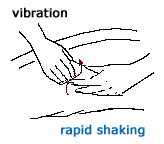 The action is initiated by bracing with the heels of the hands, then either holding the thumbs steady and moving the fingers in circular motion. Each method is adaptable to the type of area or articulation that is being massaged. The motion is started at a central point, and then a circular movement is initiated, with the hands moving in opposite directions away from the center point.