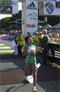This was Berlin 2003, another year and almost perfect conditions faced the runners as they toed the line to the beat of Sir Simon Rattle from Britain, the director of the Berlin Philharmonic, with assistance from the Mayor of Berlin, Klaus Wowereit.