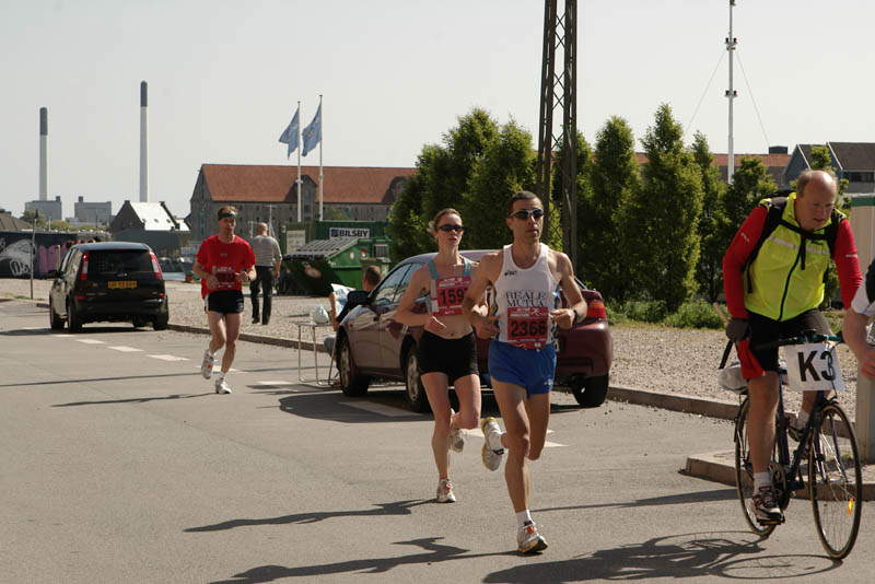 Claire Peacock tracks a runner on her way to 3rd place overall in the Women's category - Copenhagen Marathon 2007
