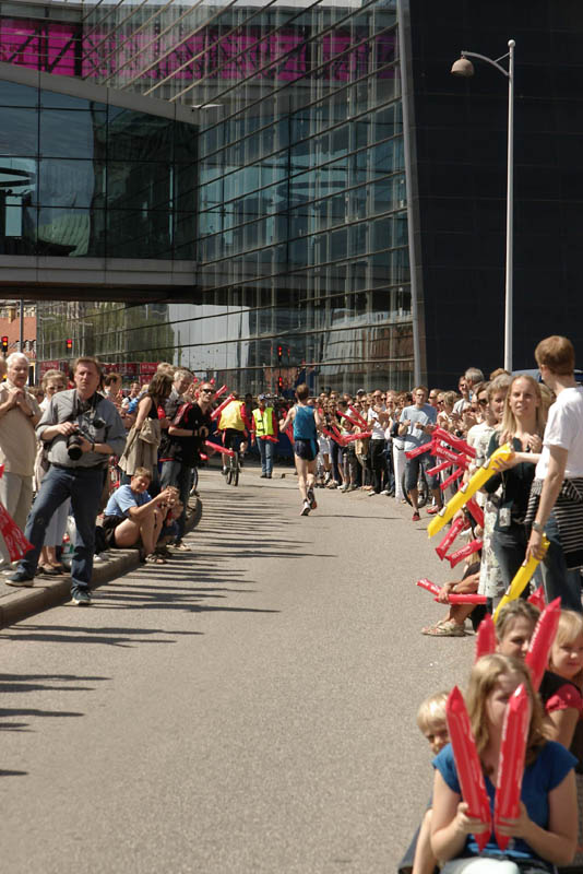 Spectators line the last 200m to welcome the athletes after their arduous journey