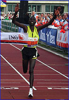 The 29-year old Kenyan Emmanuel Mutai was the surprising winner of the 32nd ING Amsterdam Marathon. In 2.06.29 Mutai finished on the first place in the Olympic Stadium. His time was just 9 seconds too slow to beat the course record of Haile Gebrselasssie of 2005.