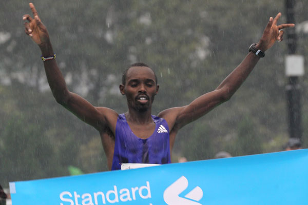 Top finishers in the the Standard Chartered Hong Kong Marathon early Sunday morning were unanimous in declaring the conditions the worst they had run in. But despite the monsoon rain, the men in particular put on a storming finale, which came down to a duel in the last two kilometres, with the lead changing up to the final 400 metres when Mike Kiprotich Mutai finally pulled clear of his Kenyan colleague, Lawrence Cherono, to win by two seconds in 2.12.12.