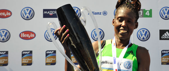 Lydia Cheromei, the new women’s champion, was a World Cross Country junior champion at the age of 13, 20 years ago, but having won the Hervis Prague Half Marathon earlier this year, there was always some expectation that she could get near the course record. She was rarely troubled during the race, winning by almost six minutes and proving to the world that she has the potential to race against the very best in the marathon. Ethiopia’s Yeshimebet