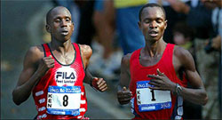 Martin lel and Rodgers Rop shoulder to shoulder New York 2003