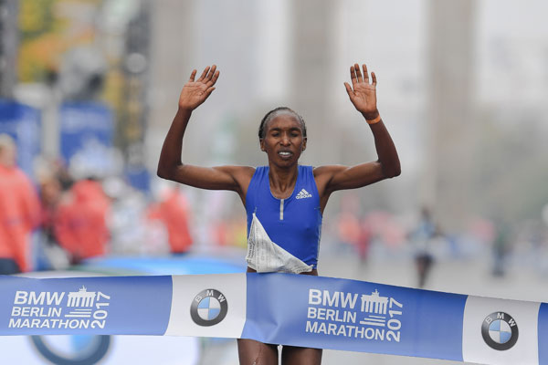 “That was definitely the hardest marathon I’ve ever run,” said Eliud Kipchoge, talking about the weather. “The conditions were far from easy. After Adola had taken the lead I was still confident of victory. I think I can still break the world record,” said the 32-year-old Kipchoge whose time of 2:03:32 was the second fastest of his career, following his victory in London in 2016 with 2:03:05. However he did run 2:00:25 on the Formula 1 circuit of Monza in Italy in early May, although this performance did not conform with IAAF rules. For the seventh time in succession, Berlin’s champion set a world best for the year.
