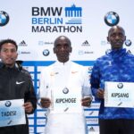 Interested observers, invited back for the 40th anniversary of the Berlin Marathon, will be former women’s world record holders, Naoko Takahashi of Japan, 2.19.46 (first women’s sub 2.20) in 2001; and Tegla Loroupe of Kenya, 2.20.43 in 1999.