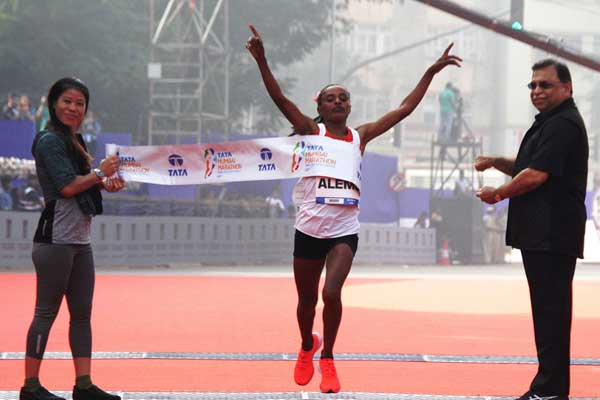 Alemu shook off Gobena but given the credentials of her rival and the intensity of the conditions, with temperatures by now having risen to 26 degrees, nothing was certain but she maintained her focus to clock an impressive personal best of 2:25:45 and finishing 24 seconds ahead of the 2018 Tata Mumbai Marathon champion, who finished second in 2:26:09 despite later saying that she had been suffering from stomach problems over the final 10 kilometres.