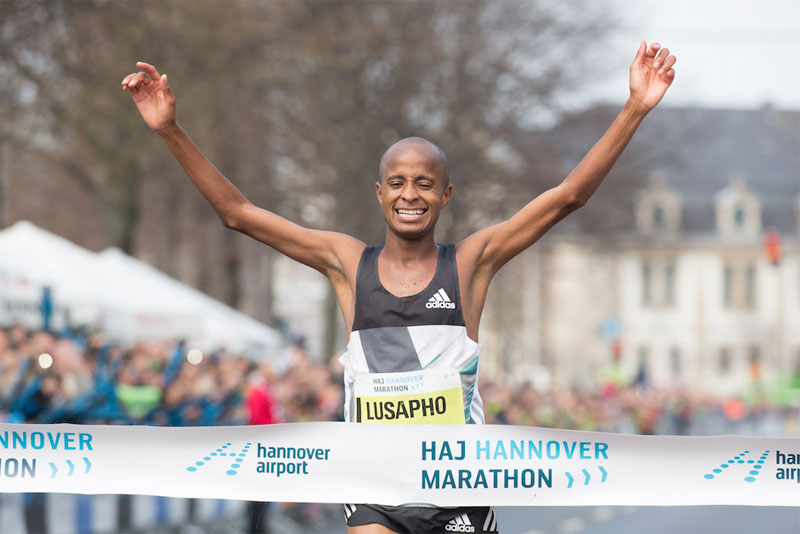 April 2016 – Lusapho April took the HAJ Hannover Marathon for the third time after 2011 and 2013. The South African became the first male runner in the history of the event to achieve three victories.