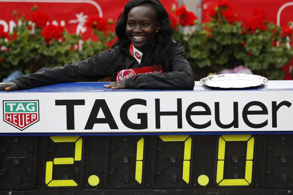 At 30km she was 78 seconds ahead of her nearest challenger, three-time Olympic gold medallist Tirunesh Dibaba. The Ethiopian began to make inroads into Keitany’s lead in the final stages, but then suffered from stomach cramps just a few kilometres from the finish.