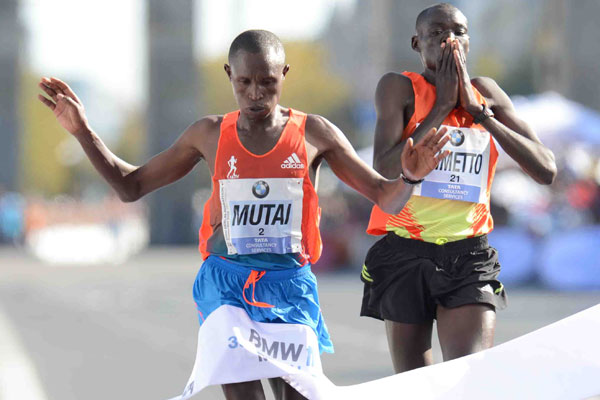 Mutai won the 39th BMW Berlin Marathon in 2.04.15, narrowly beating his training partner, Dennis Kimetto, who clocked the fastest marathon debut in history, 2.04.16. Another Kenyan debutant, 19 year old Geoffrey Kipsang was third in 2.06.12.