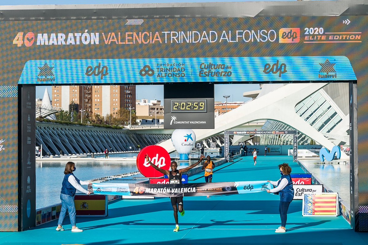 Valencia, 6 December 2020 – The Valencia Trinidad Alfonso EDP Marathon has taken another step towards its goal of continuing to improve its global position, becoming the third fastest marathon in the world thanks to the 2h03:00 mark of the Kenyan Evans Chebet...